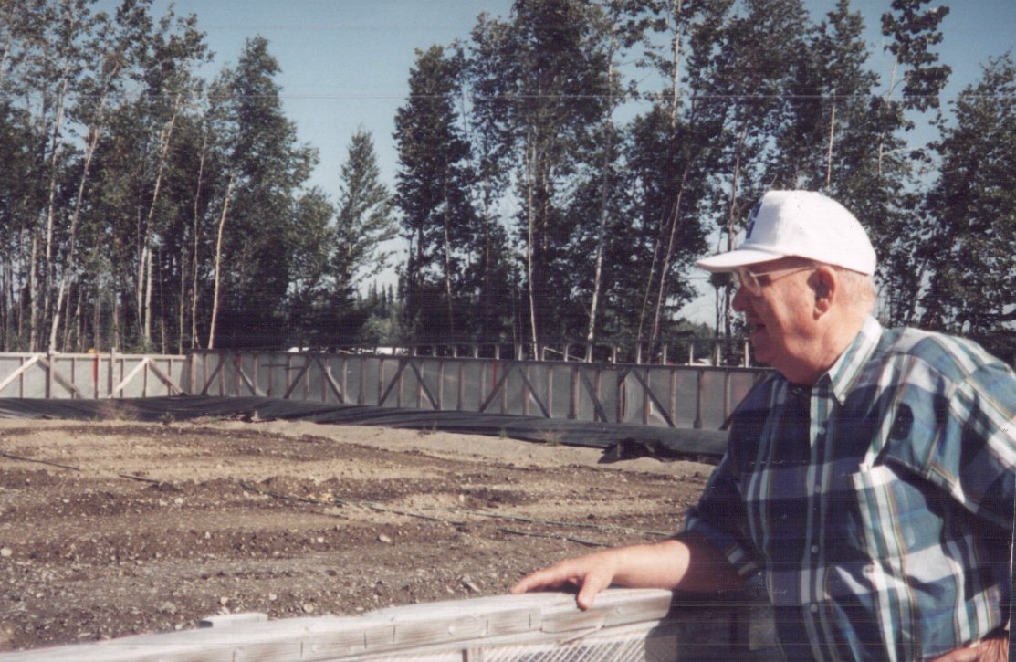 coordinating both projects to insure that bench scale laboratory procedures would be incorporated into the large-scale engineering design and constructions implemented by BIO-FAC, as well as providing assistance in construction design, and consultation during the projects. BIO-FAC was primarily responsible for construction of the "treatment cell" used and of the leachate recovery and reapplication system. At right, Doug Flatt, ETTL's president, looks over one end of the treatment cell before its plastic cover was added. During the course of the projects, BIO-FAC provided large-scale project design, site monitoring, regulatory liaison, and documentation of site closure. Dr. James Stewart, of UT-Tyler, was called upon to isolate and identify indigenous microbes from the contaminated soils, to supply freeze-dried microbial concentrates to the projects, and for results evaluations.